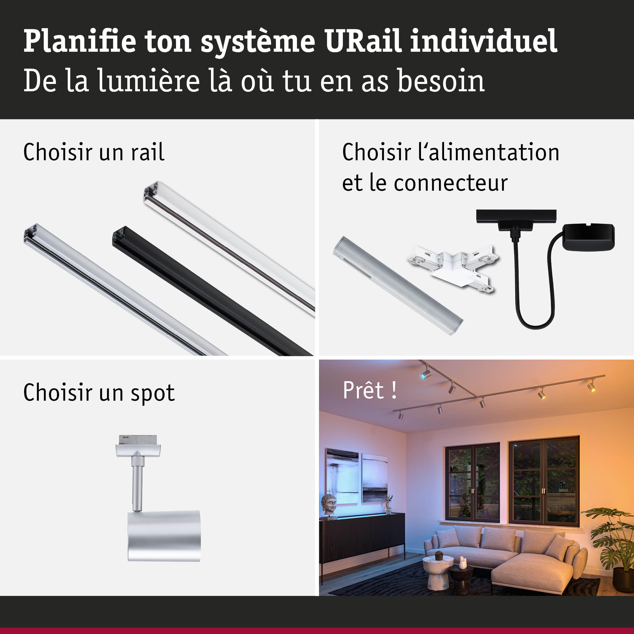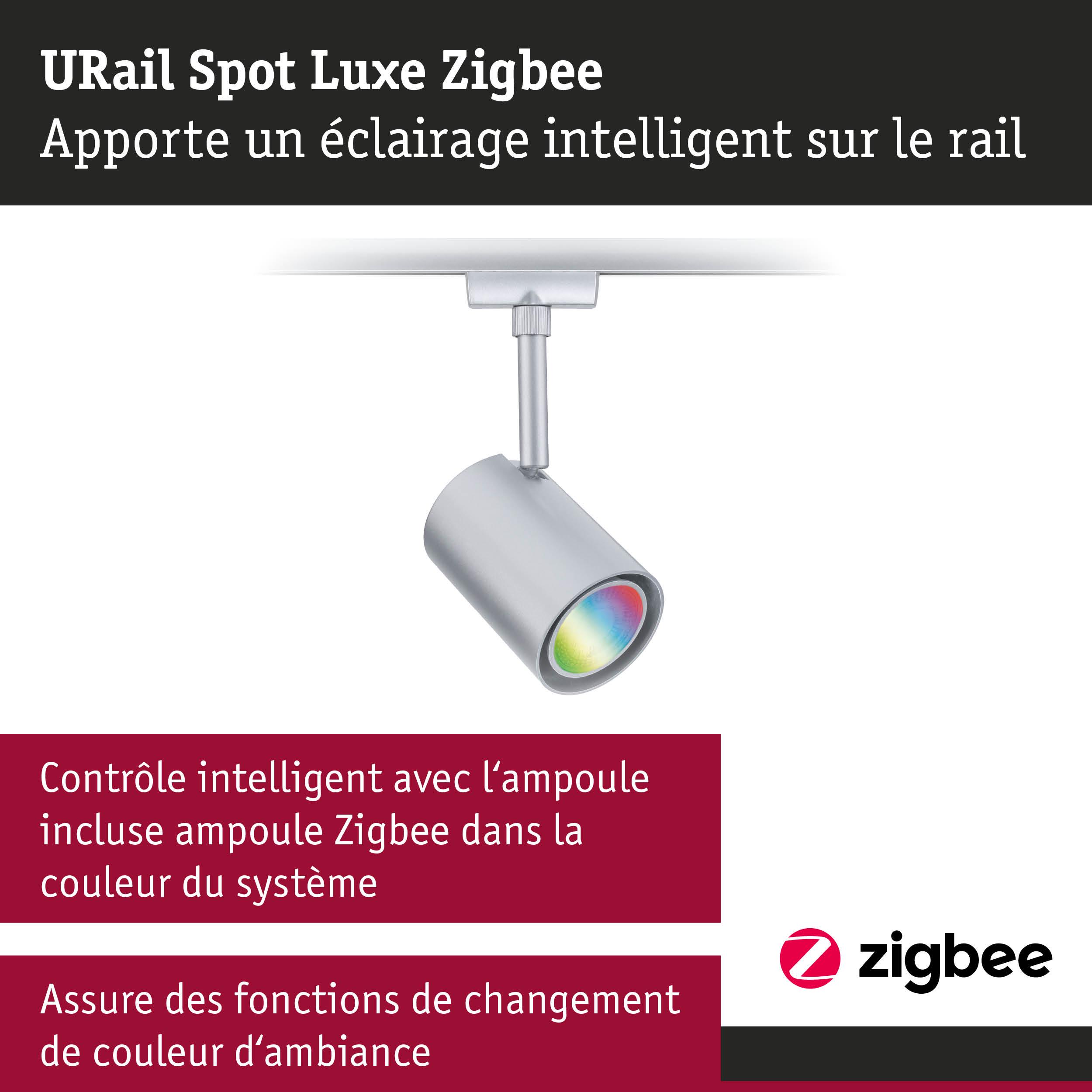 URail Spot sur rail Smart Home Zigbee 3.0 Luxe GU10 350lm 4,8W RGBW+ gradable 230V Chrome mat