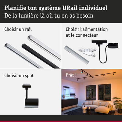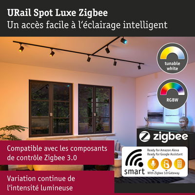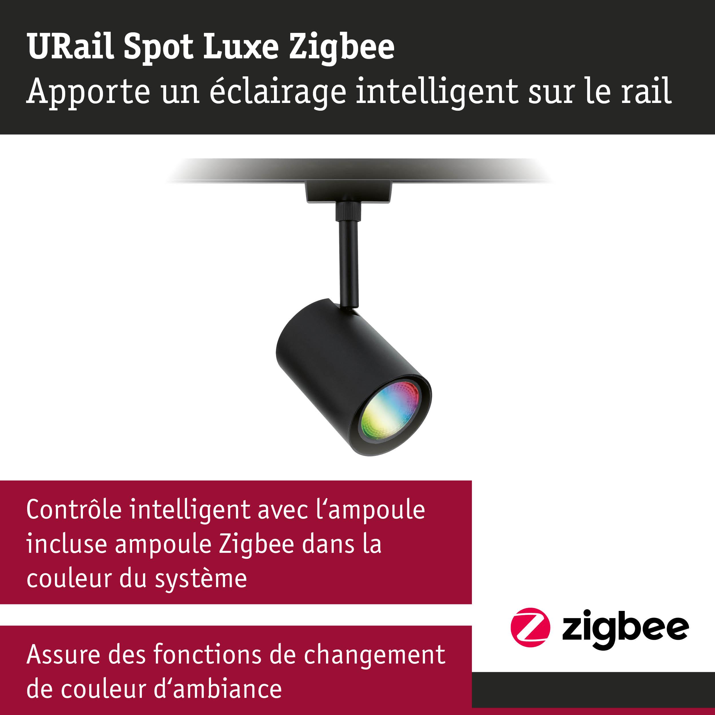 URail Spot sur rail Smart Home Zigbee 3.0 Luxe GU10 350lm 4,8W RGBW+ gradable 230V Noir mat