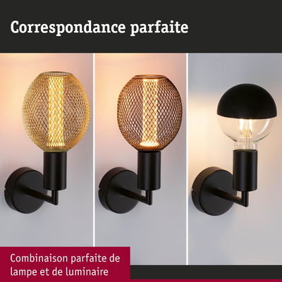 La tendance du Mix & Match" est parfaite pour donner un style unique à votre intérieur. Notre applique murale Ravi avec sa finition noir mat en est un exemple parfait. Son design minimaliste et moderne, permettra de l'associer facilement à des ampoules décoratives originales et d'en faire le centre de l'attention. Grâce à sa protection IP44, cette applique Ravi peut également être utilisée dans la salle de bains. Le set comprend l'ampoule de la série Metallic Glow, qui se combine particulièrement bien avec cette applique murale. L'ampoule LED Metallic Glow diffuse une lumière dorée subtile, tandis que sa cage métallique décorative de couleur laiton apporte une touche d'élégance. La rencontre parfaite du design moderne et de la technologie LED performante, créant une lumière chaleureuse et dorée."
