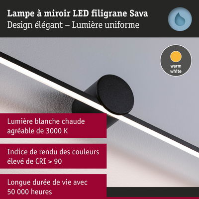 Éclairage de miroir LED Sava IP44 3000K 850lm 230V 13,5W Noir mat