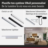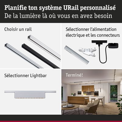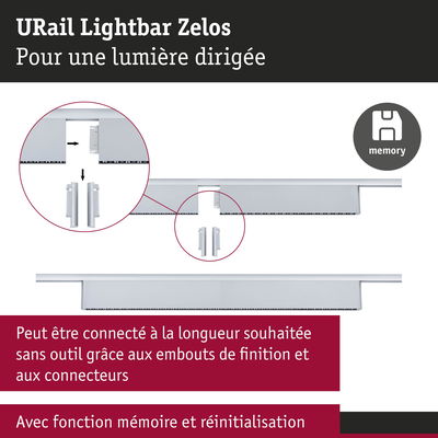 Le luminaire URail Lightbar Zelos en Chrome mat avec une température de couleur de 3000 K crée une ambiance lumineuse blanc chaud agréable dans les pièces à vivre, les bureaux, les couloirs ou autres pièces. Les lentilles alignées les unes aux autres permettent de diriger la lumière. Fabriqué en aluminium de haute qualité dans un design sobre, il s’intègre parfaitement dans tous les concepts d’habitat. La longueur de 32,2 cm n’est pas idéale ? Aucun problème. Pour obtenir la longueur parfaite pour différentes pièces, vous pouvez enchaîner les Lightbars les unes aux autres à la longueur souhaitée. Pour cela, il suffit de retirer les embouts de fermeture et de les rallonger à la longueur souhaitée à l’aide des connecteurs fournis. Il est également possible de les combiner sans problème avec les Lightbars Ceris. Autre point fort : la fonction de variation d’intensité 3-Step, qui permet de régler la luminosité sur trois niveaux à l’aide d’un interrupteur conventionnel. La fonction mémoire, qui permet de mémoriser le dernier réglage de l’éclairage jusqu’à la prochaine mise en marche, vous offre un confort supplémentaire.