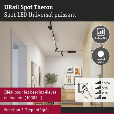 URail Spot sur rail Theron Spot individuel 1100lm 11W 4000K gradable 230V Noir mat