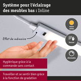 Le lot de deux éclairages sous-meubles Inline extensible en Blanc dépoli discret et de longueur 550x26mm offre une solution élégante pour l'éclairage des plans de travail. Ces luminaires pour meubles garantissent un éclairage optimal et créent une atmosphère agréable. Grâce à leur commande sans contact, ils permettent une manipulation hygiénique. Le kit de démarrage est extensible et peut être prolongé par un kit d'extension au maximum. Plusieurs longueurs peuvent être combinées entre elles pour obtenir la solution d'éclairage recherchée. De plus, la fonction de variation d’intensité permet d'adapter la température de couleur blanc chaud en fonction des besoins individuels. Le raccordement se fait directement au réseau 230 V avec un transfo-prise.