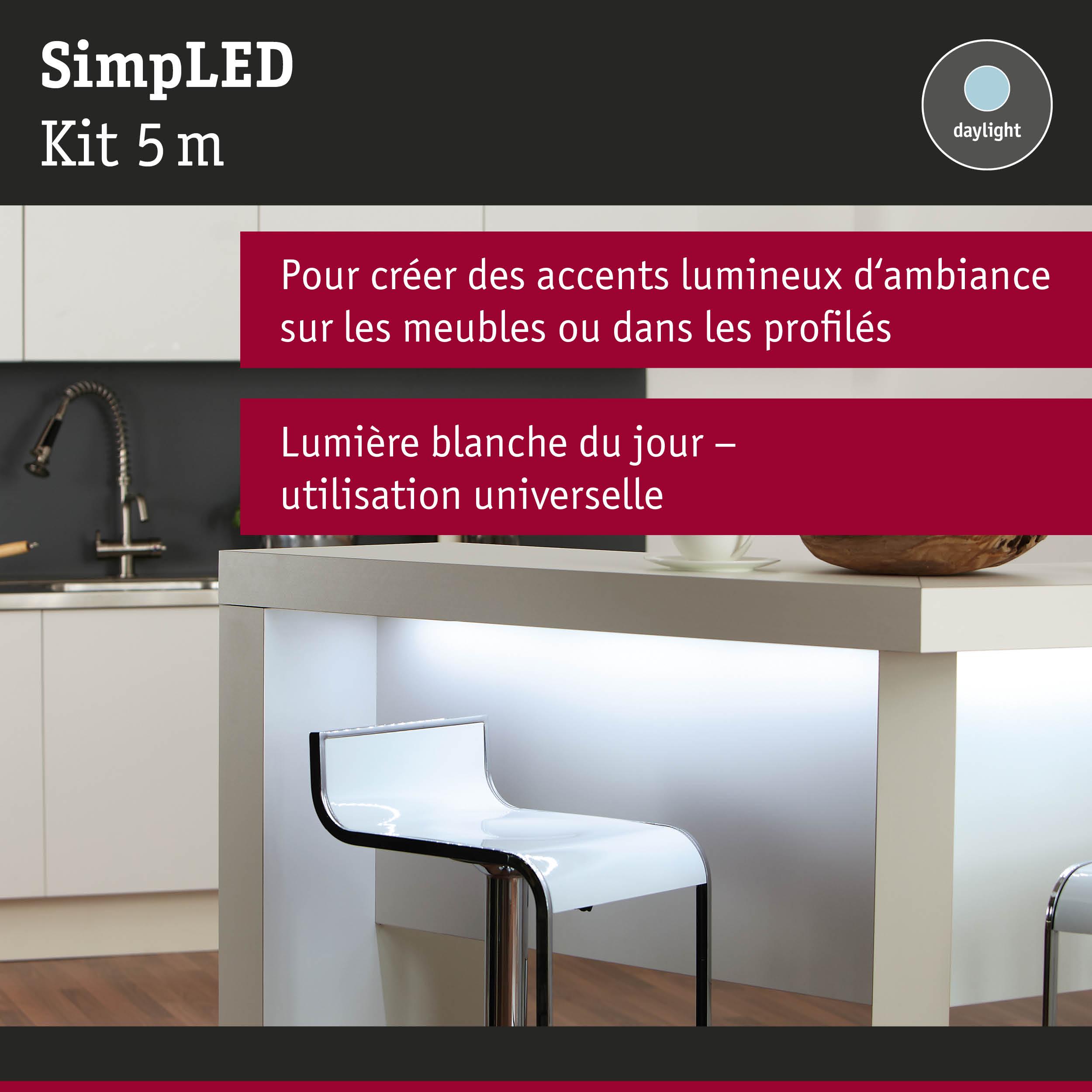 SimpLED Strip LED Blanc lumière Kit complet 5m revêtue 11W 310lm/m 60 LEDs/m 6500K 18VA