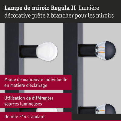 Éclairage de miroir Regula II E14 230V max. 4x40W gradable Noir