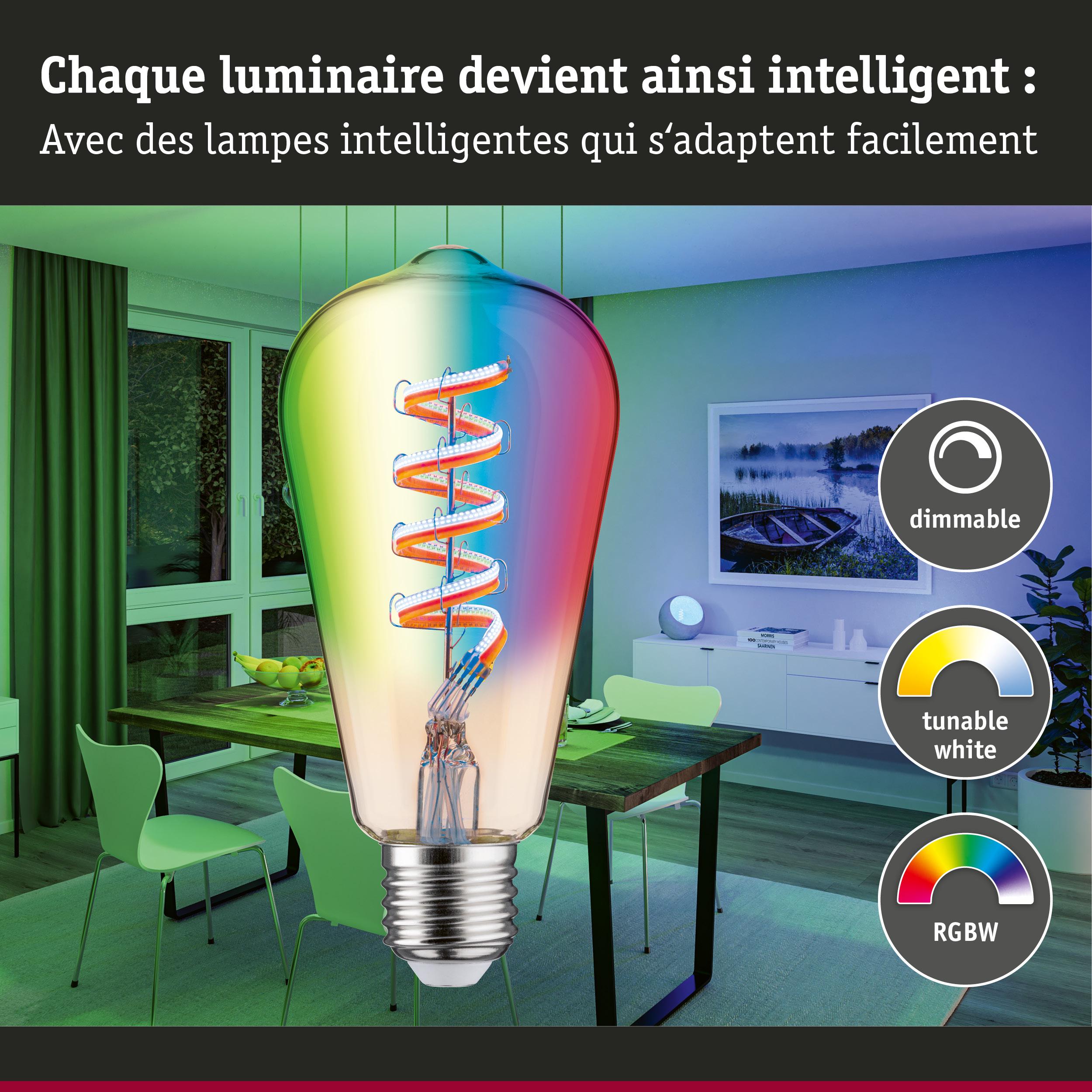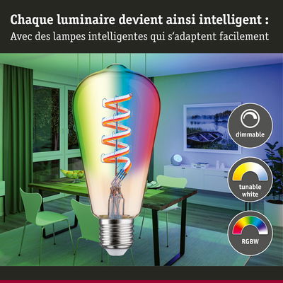 Filament 230 V Smart Home Zigbee 3.0 Ampoules LED ST64 E27 470lm 6,3W RGBW+ gradable Doré
