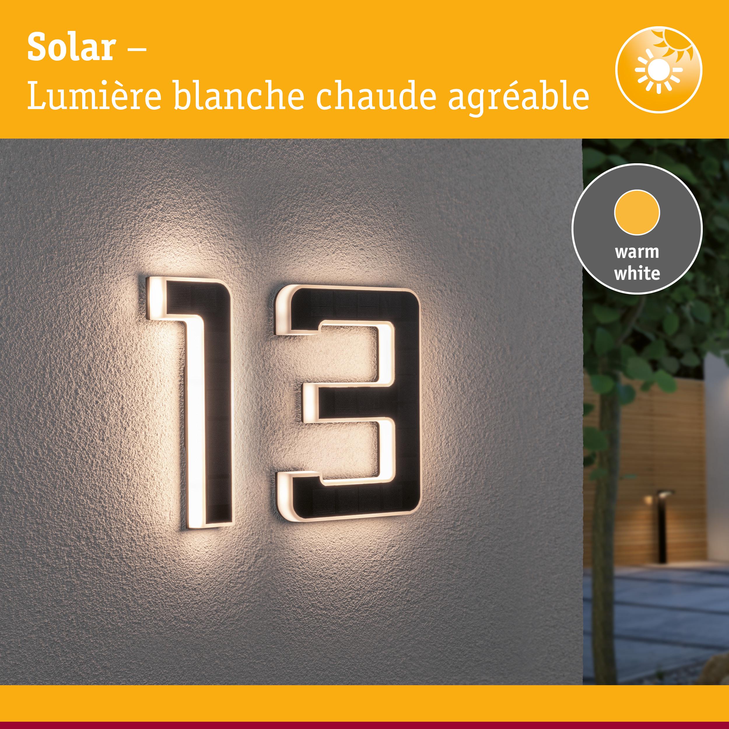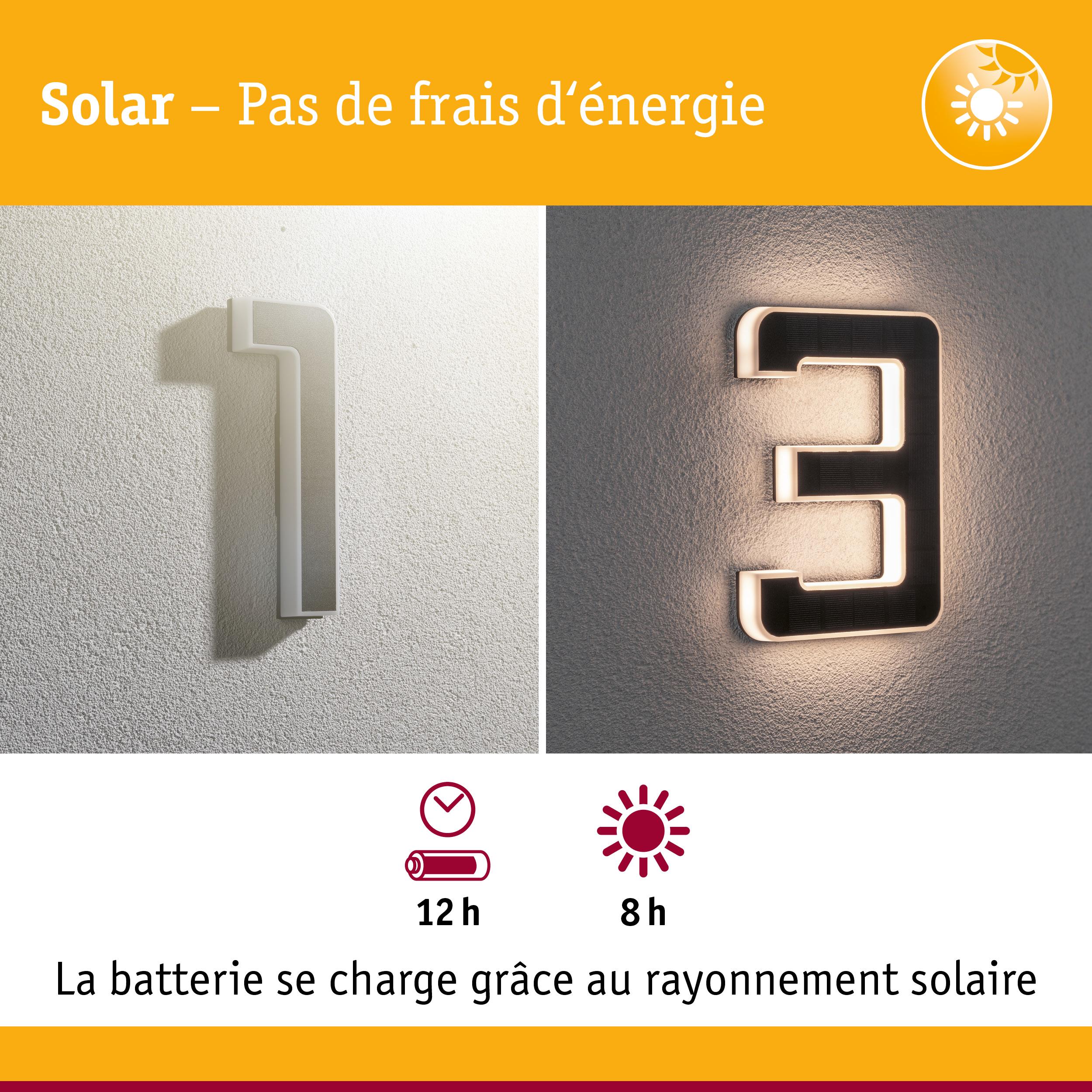 Le numéro 13 lumineux est la solution idéale pour éclairer votre numéro de maison, que ce soit seul ou combiné avec d'autres chiffres. Grâce à sa batterie solaire, il peut être installé de manière autonome sur le mur de la maison, sans raccordement électrique. Pendant la journée, le panneau solaire (non visible) se charge grâce à la lumière du soleil, et la nuit, le numéro est illuminé de manière indirecte. Plutôt que d'acheter les deux chiffres séparément, le numéro 13 est disponible en set à prix avantageux.