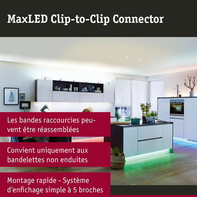 - Pour raccorder de nouveau des rubans sans revêtements MaxLED après leur raccourcissement