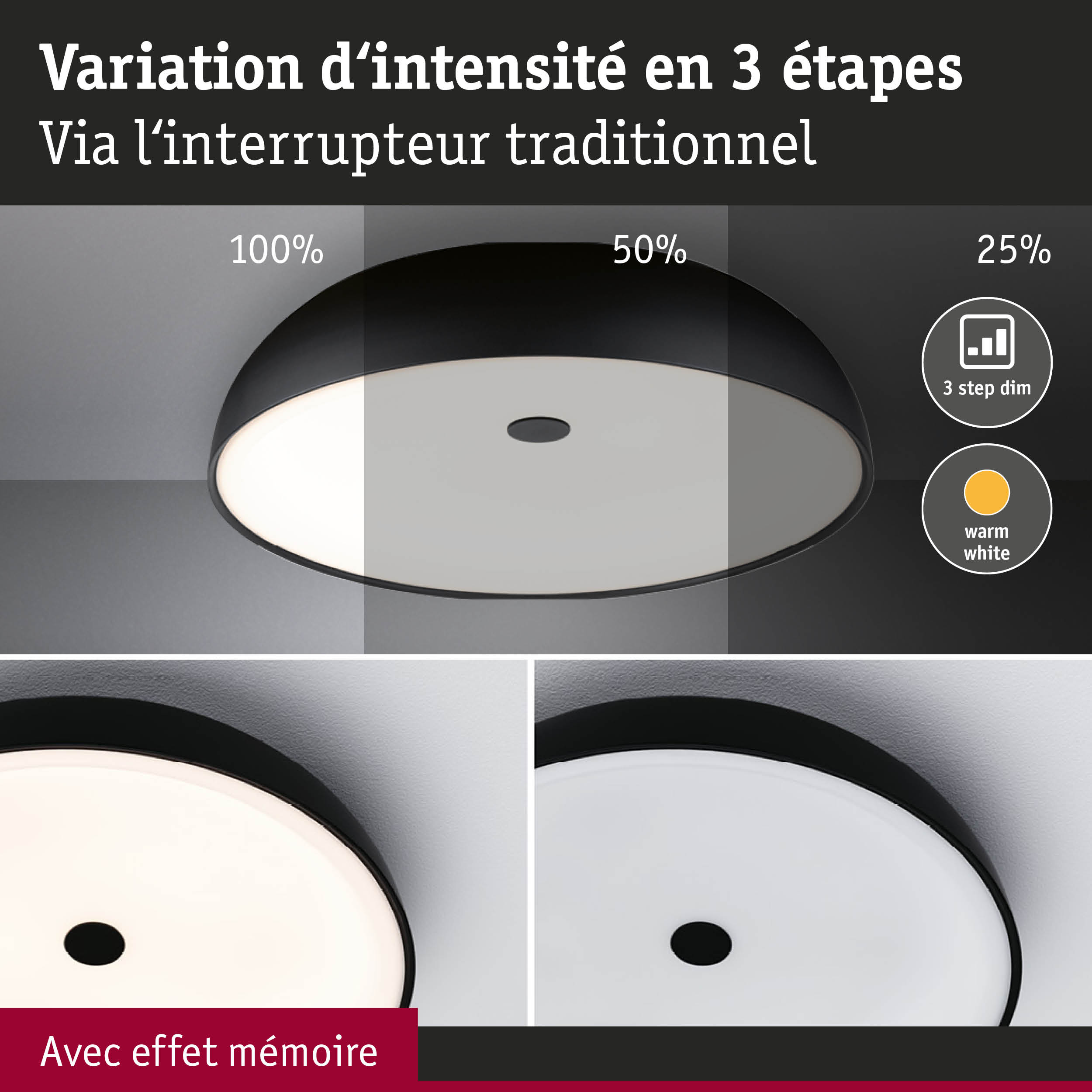 Plafonnier LED 3-Step-Dim Jaron 2700K 1900lm 230V 26,5W gradable Noir mat