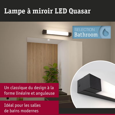 Selection Bathroom Éclairage de miroir LED Quasar IP44 3000K 600lm 230V 7,5W Noir