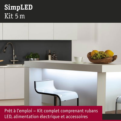 SimpLED Strip LED Blanc lumière Kit complet 5m revêtue 11W 310lm/m 60 LEDs/m 6500K 18VA