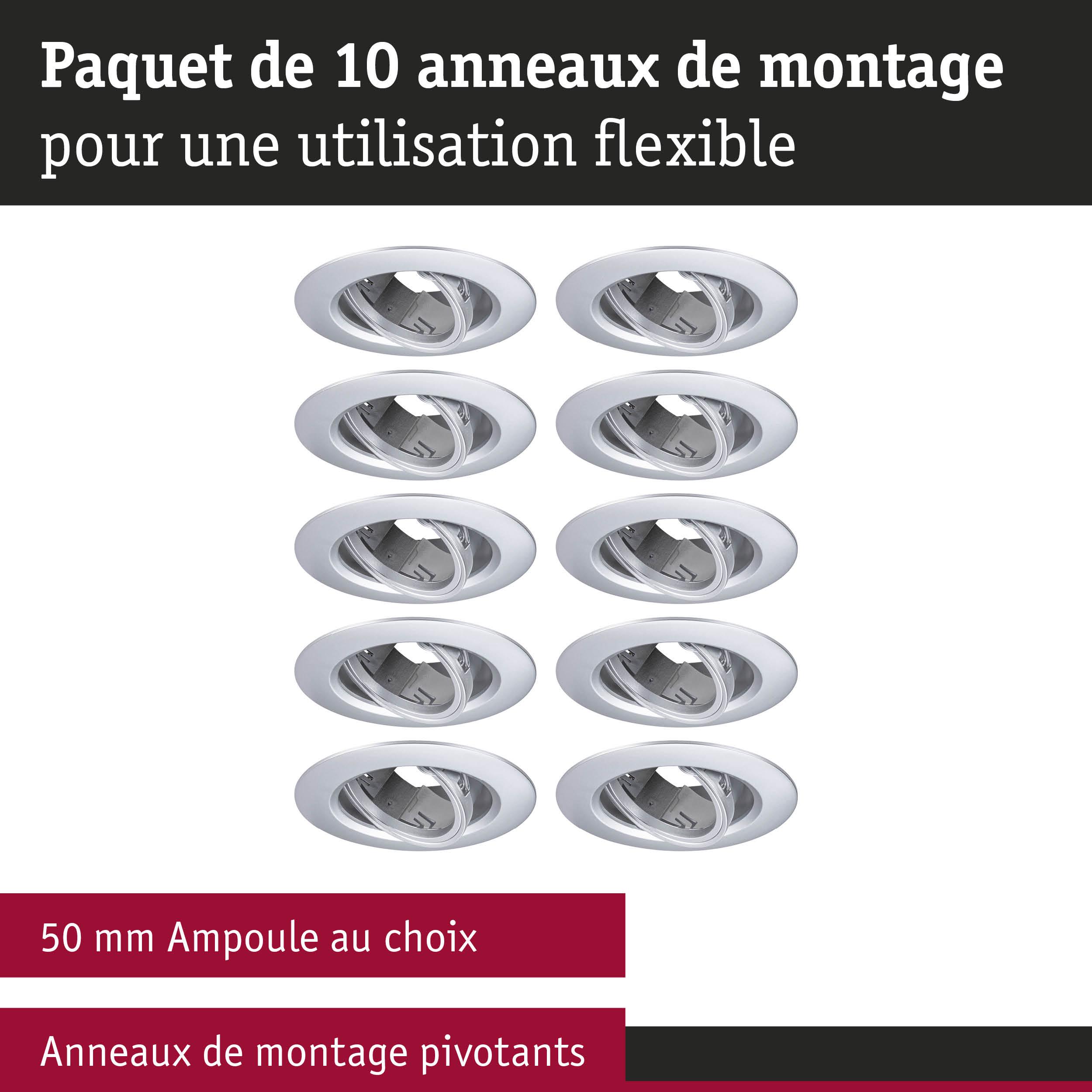Spot encastré Kit de 10 orientable rond 90mm 30° GU10 max. 10x10W 230V gradable Chrome mat