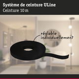La ceinture ULine sert de base au système de ceinture ULine 48V. Disponible en deux longueurs (5 m et 10 m) et en cinq couleurs (du noir classique à l'orange exceptionnel), elle peut être placée librement dans la pièce et, si nécessaire, raccourcie à l'aide de ciseaux. Les luminaires correspondants peuvent être disposés à volonté sur la sangle. La sangle de 2,1 cm de largeur se fixe au mur, au plafond ou au sol à l'aide de supports adaptés. Il est ainsi possible de réaliser un concept d'éclairage personnel en quelques étapes. Le matériau Dacron de la sangle, résistant à la déchirure et durable, assure une durée de vie élevée et une grande capacité de charge. Les sangles sont revêtues et faciles à nettoyer. Un point fort particulier est le passage invisible du courant à l'intérieur, qui permet un aspect propre sans fils visibles. Deux embouts de finition en silicone sont inclus avec toutes les sangles pour une finition esthétique. Le système de ceinture ULine est une solution innovante pour des expériences lumineuses uniques dans toutes les dimensions de la pièce et permet une mise en scène lumineuse ciblée sur les murs, les plafonds et les sols.
