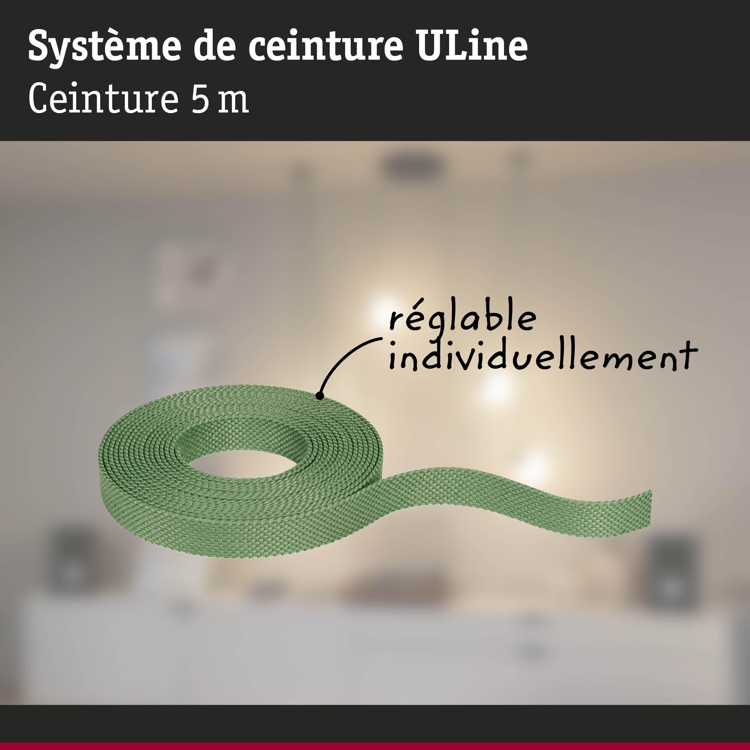 La ceinture ULine sert de base au système de ceinture ULine 48V. Disponible en deux longueurs (5 m et 10 m) et en cinq couleurs (du noir classique à l'orange exceptionnel), elle peut être placée librement dans la pièce et, si nécessaire, raccourcie à l'aide de ciseaux. Les luminaires correspondants peuvent être disposés à volonté sur la sangle. La sangle de 2,1 cm de largeur se fixe au mur, au plafond ou au sol à l'aide de supports adaptés. Il est ainsi possible de réaliser un concept d'éclairage personnel en quelques étapes. Le matériau Dacron de la sangle, résistant à la déchirure et durable, assure une durée de vie élevée et une grande capacité de charge. Les sangles sont revêtues et faciles à nettoyer. Un point fort particulier est le passage invisible du courant à l'intérieur, qui permet un aspect propre sans fils visibles. Deux embouts de finition en silicone sont inclus avec toutes les sangles pour une finition esthétique. Le système de ceinture ULine est une solution innovante pour des expériences lumineuses uniques dans toutes les dimensions de la pièce et permet une mise en scène lumineuse ciblée sur les murs, les plafonds et les sols.