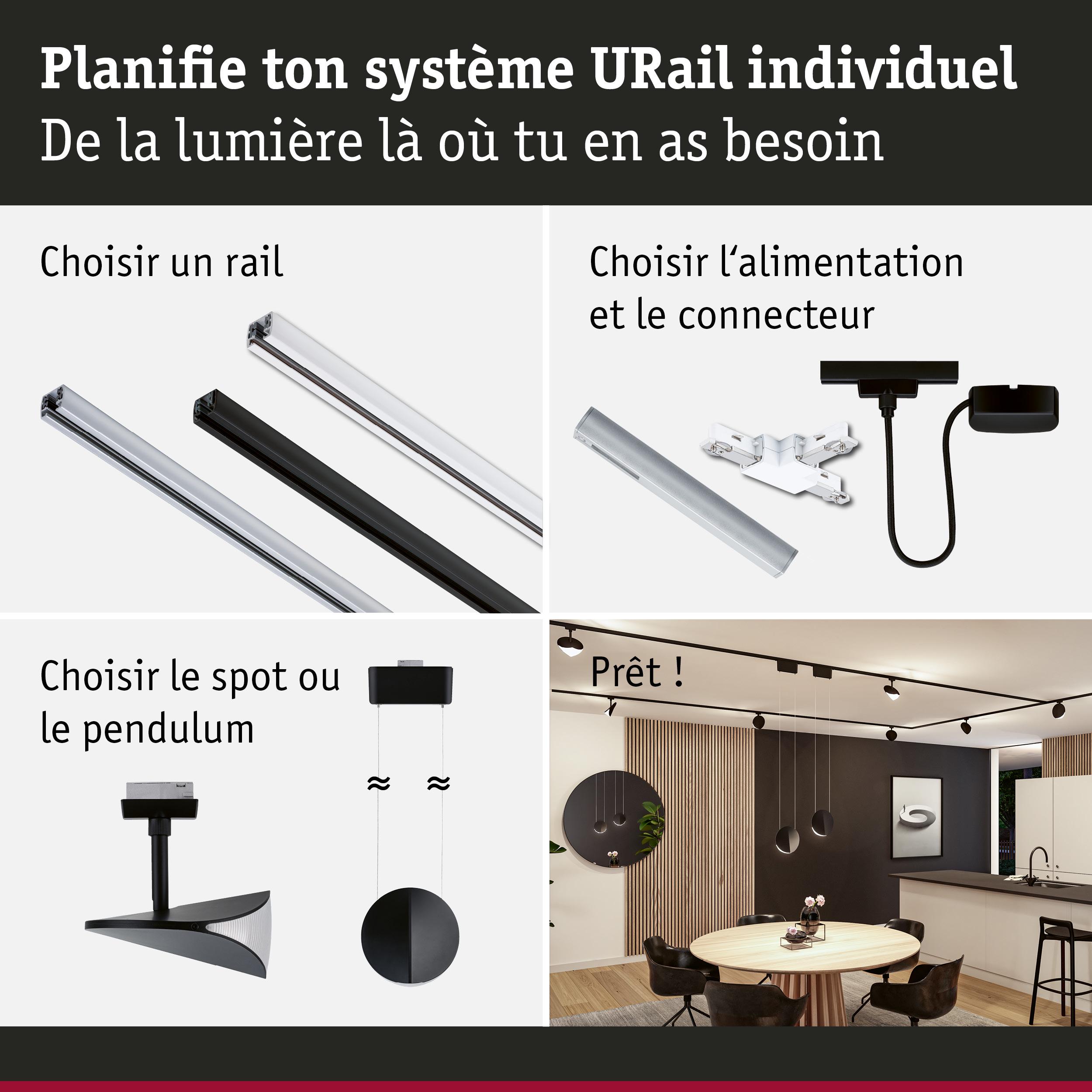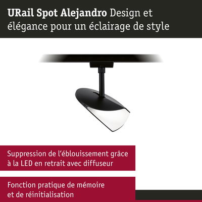 URail Spot sur rail 3-Step-Dim Alejandro 800lm 10W 4000K gradable 230V Noir mat