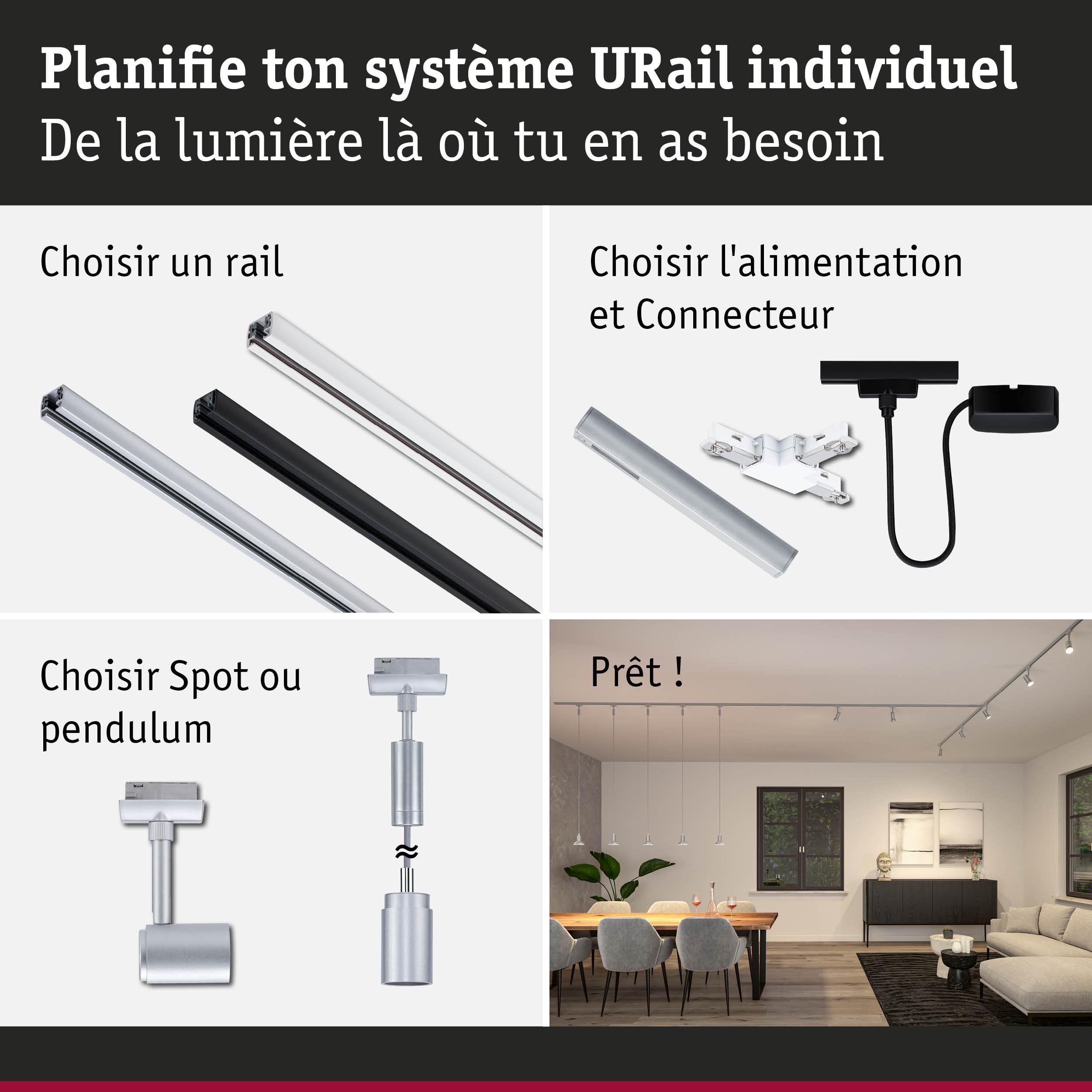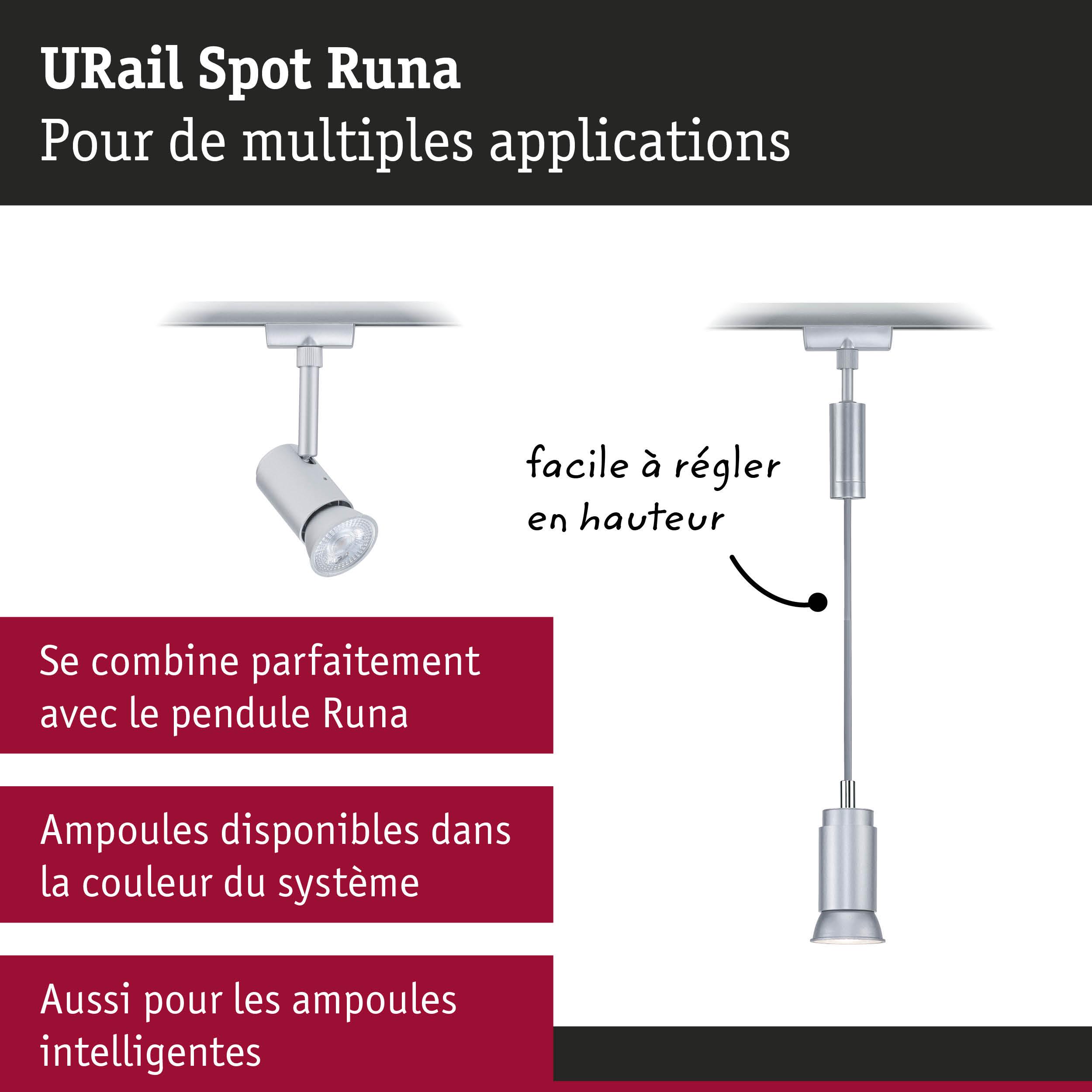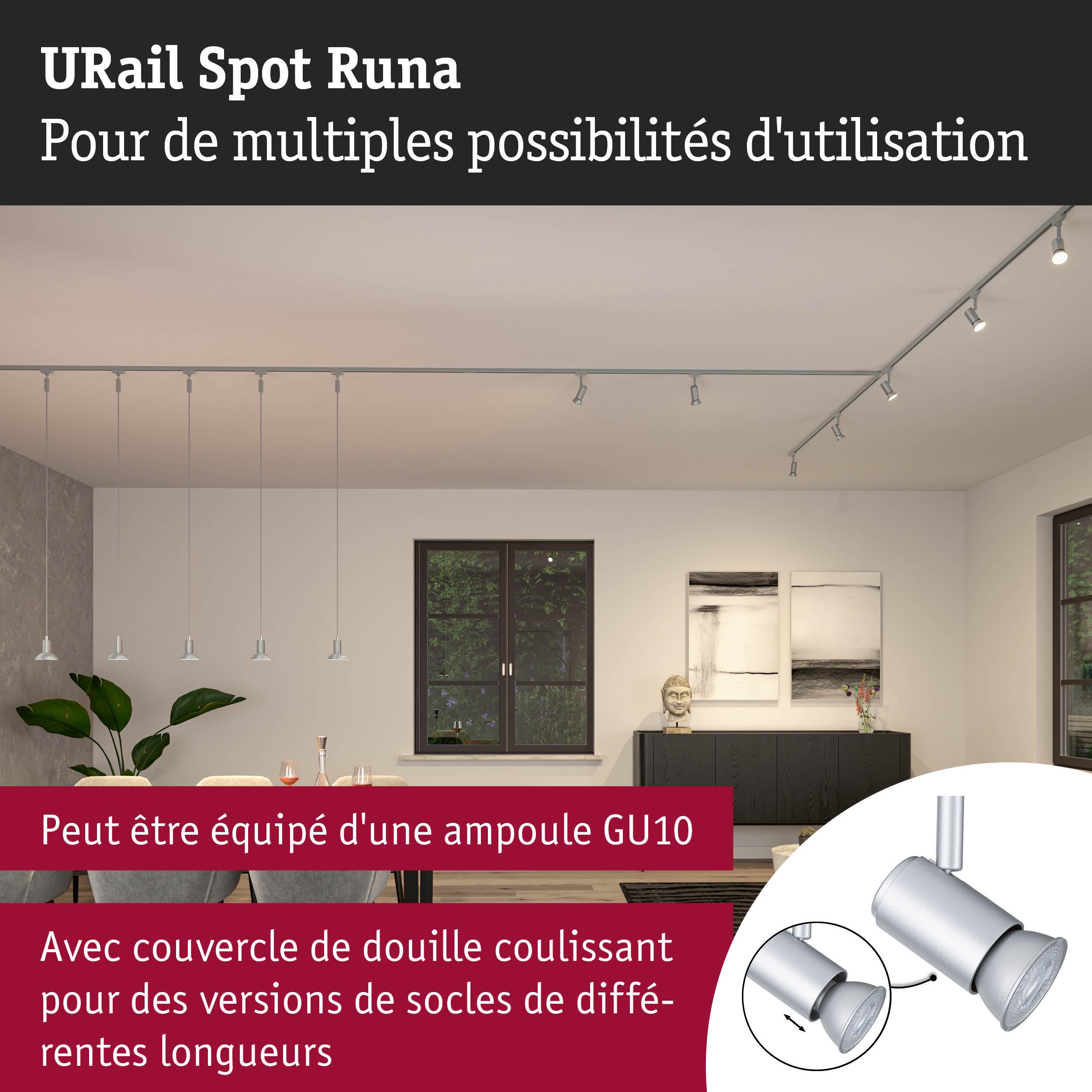 URail Spot sur rail Runa Spot individuel GU10 max. 10W gradable 230V Chrome mat