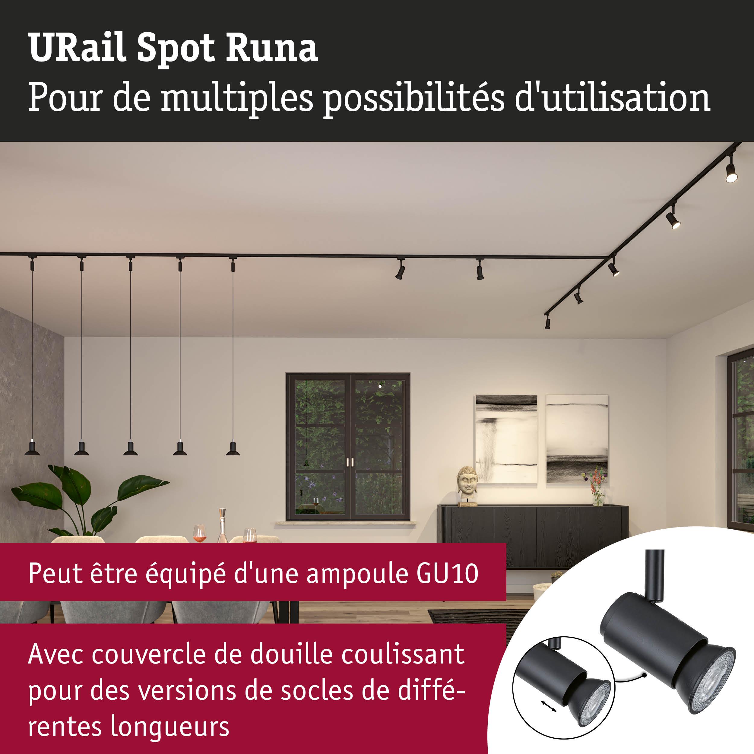 URail Spot sur rail Runa Spot individuel GU10 max. 10W gradable 230V Noir mat
