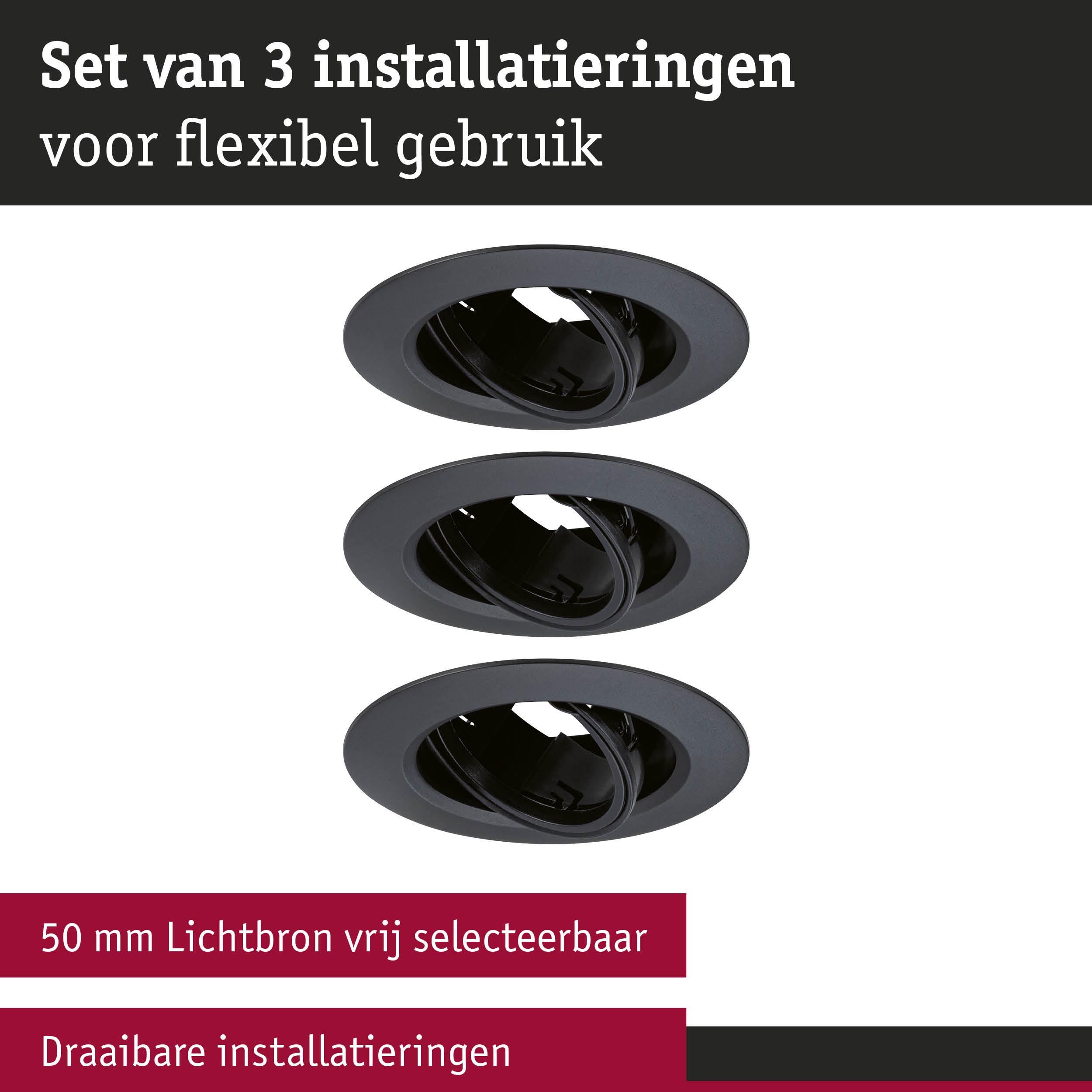 Inbouwlamp Set van 3 zwenkbaar rond 90mm 30° GU10 max. 3x10W 230V dimbaar Zwart
