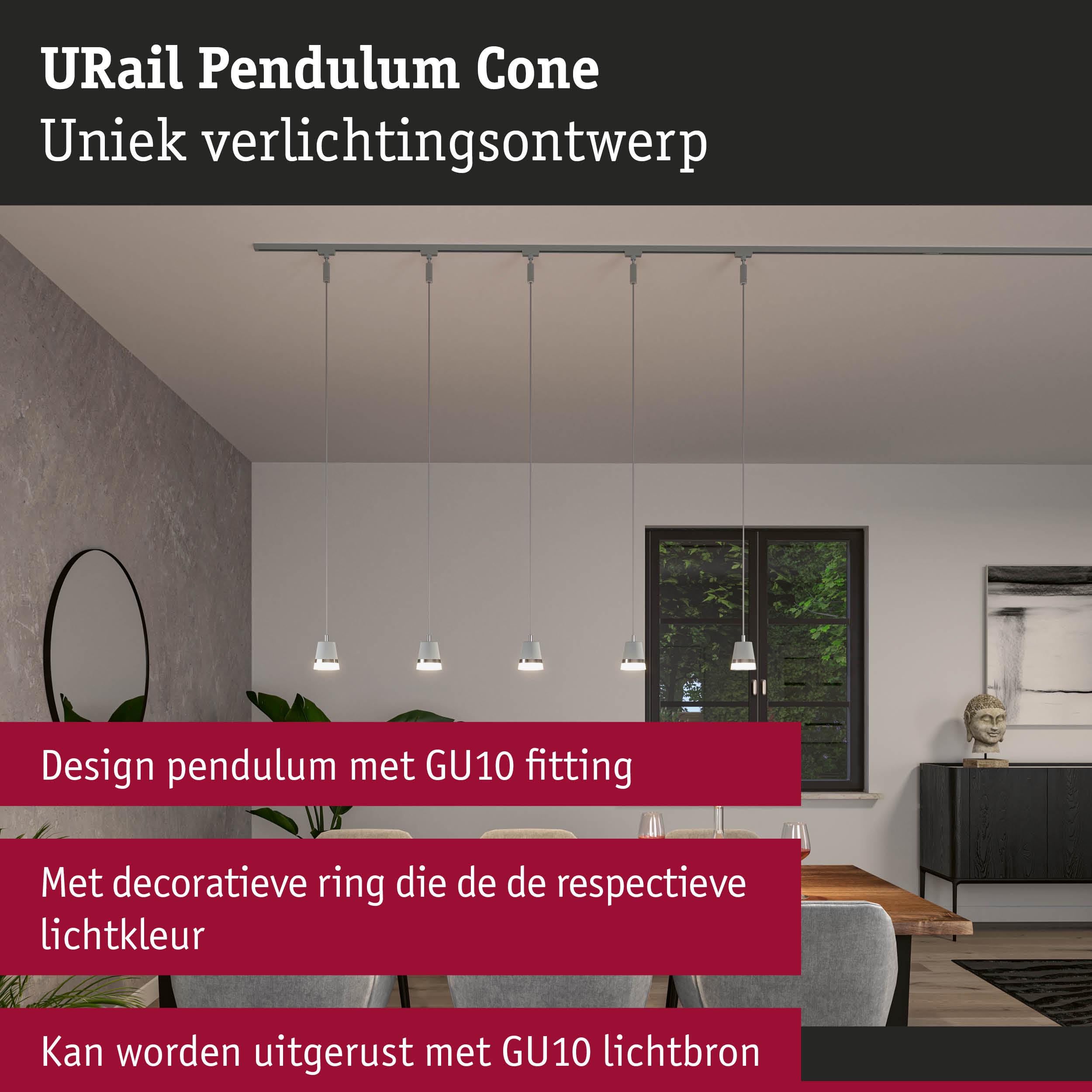 URail Pendels Cone GU10 max. 10W dimbaar 230V Chroom mat