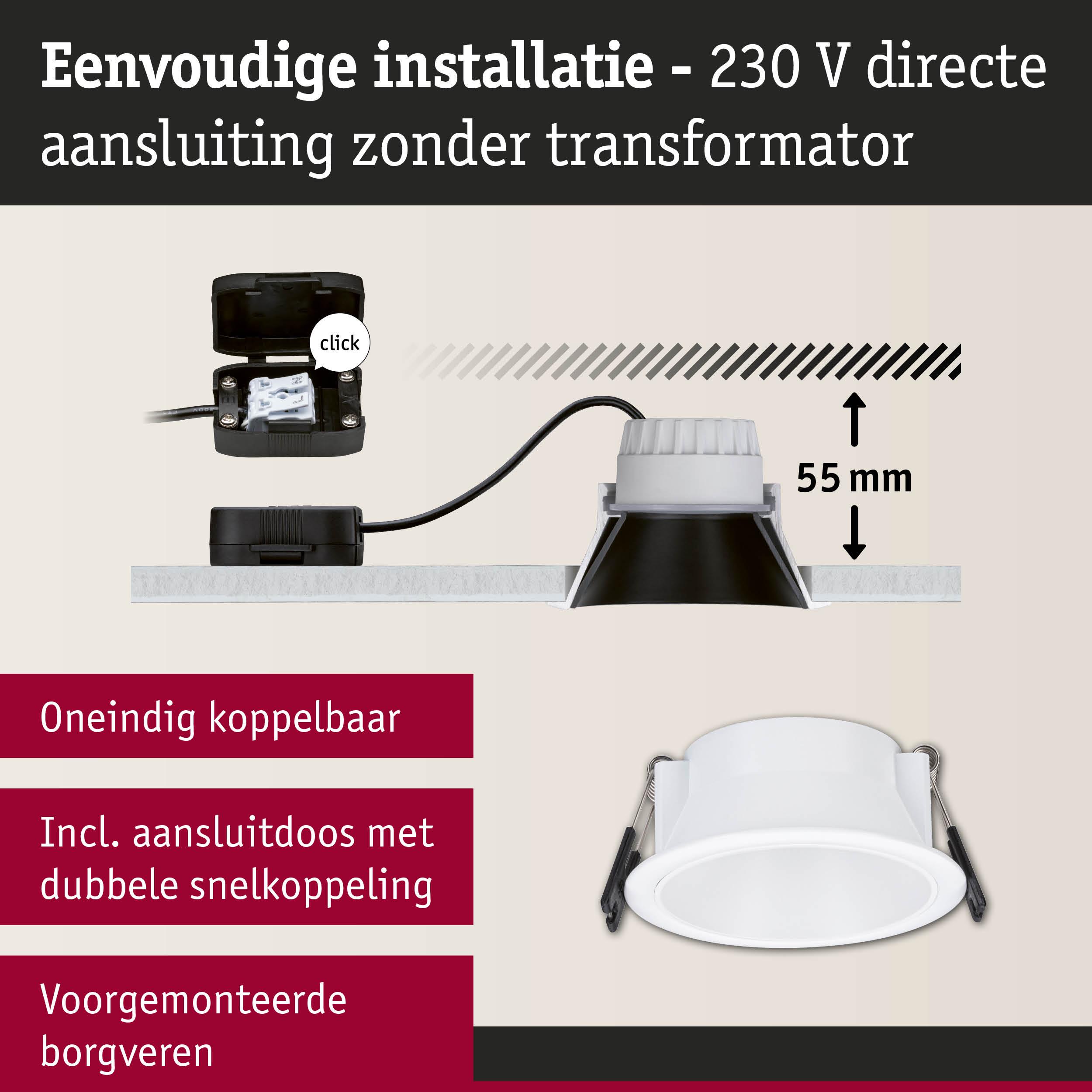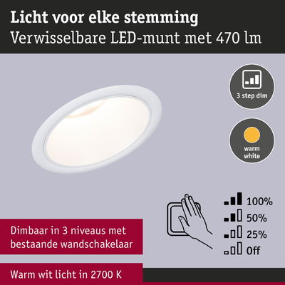 Liefde op het tweede gezicht! De inbouwlampen Cole in wit mat versmelten bijna met het plafond dankzij de gloeilamp. Maar als je ze eenmaal hebt ontdekt, wil je niet meer wegkijken. De hoogwaardige inbouwlampen worden aangeboden in een aantrekkelijke set van 6, die verkrijgbaar is tegen een gereduceerde prijs. De praktische waardeset, bestaande uit zes warmwitte inbouwlampen, verlicht een hele kamer. Dankzij de verzonken coins is de verlichting zacht en niet-verblindend. Met de 230V directe aansluiting kunnen de armaturen gemakkelijk en zonder beperkingen aan elkaar gekoppeld worden. Dankzij de hoge ip bescherming van IP44 zijn de inbouwlampen ook ideaal voor vochtige ruimtes en beschermd tegen spatwater. Ze maken ook indruk met briljante technologie: de vervangbare LED coin geeft aangenaam warmwit licht en kan in drie fasen worden gedimd met een conventionele lichtschakelaar. De helderheid kan naar wens worden aangepast - van sfeerverlichting tot volledige verlichting.