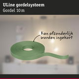 De ULine riem dient als basis voor het ULine riem-systeem. Hij is verkrijgbaar in twee lengtes (5 m en 10 m) en vijf kleuren - van klassiek zwart tot ongewoon oranje - en kan overal in de kamer worden geplaatst en indien nodig met een schaar worden ingekort. Bijpassende armaturen kunnen naar wens op de riem worden geplaatst. De 2,1 cm brede riem wordt met behulp van geschikte beugels aan de wand, het plafond of de vloer bevestigd. Zo kan in slechts een paar stappen een persoonlijk verlichtingsconcept worden geïmplementeerd. Het scheurbestendige en duurzame Textiel/Koper van de riem zorgt voor een lange levensduur en een hoge belastbaarheid. De banden zijn gecoat en gemakkelijk schoon te maken. Een speciaal hoogtepunt is de interne, onzichtbare kabelgeleiding, die zorgt voor een strakke look zonder zichtbare draden. Alles uit de riemen wordt geleverd met twee eindkappen van silicon voor een esthetische afwerking. Het ULine riem-systeem is een innovatieve oplossing voor unieke verlichtingservaringen in alle ruimtedimensies en maakt gerichte lichteffecten op wanden, plafonds en vloeren mogelijk.