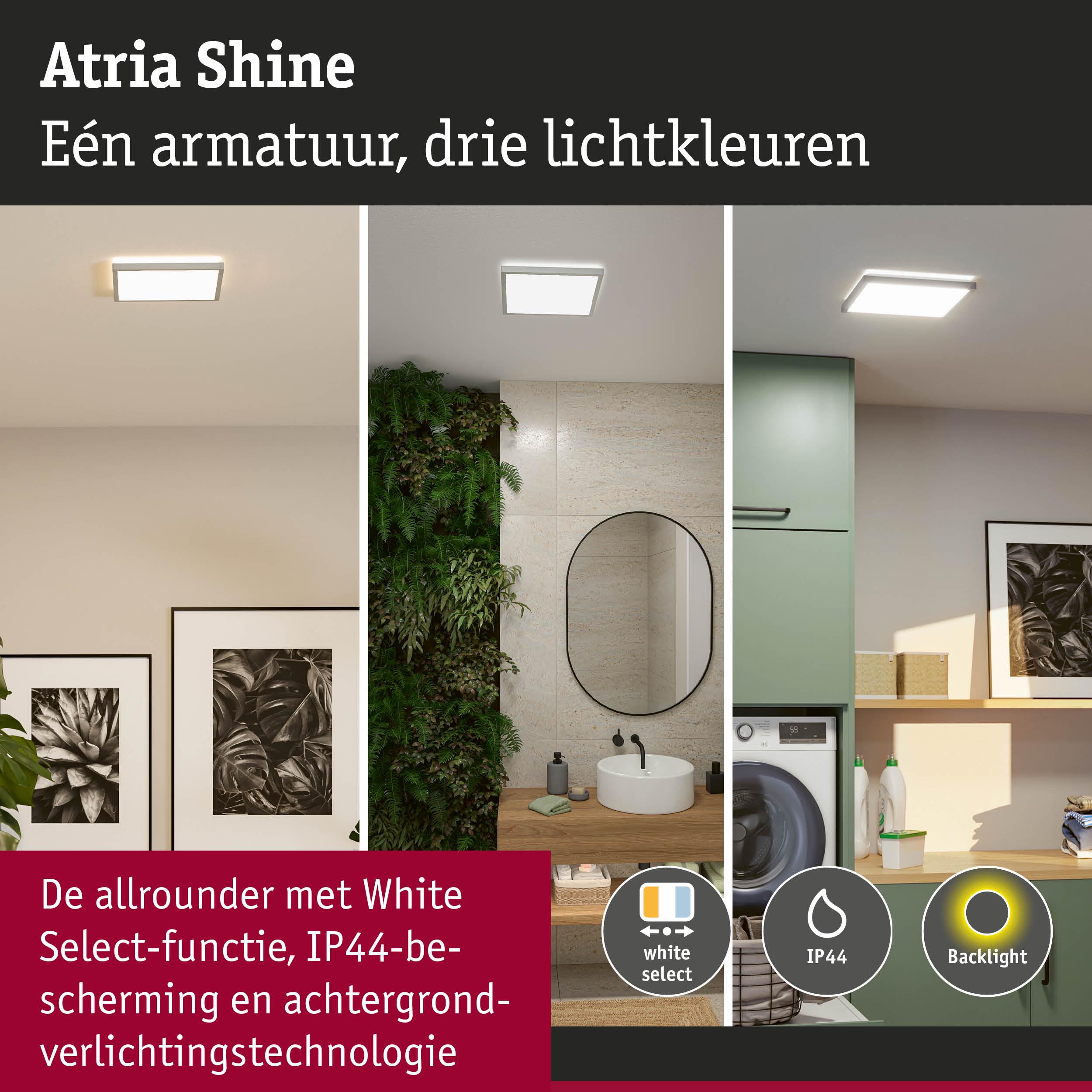 LED-paneel Atria Shine IP44 hoekig 298x298mm 15,7W 2100lm 3000 - 6500K Chroom mat