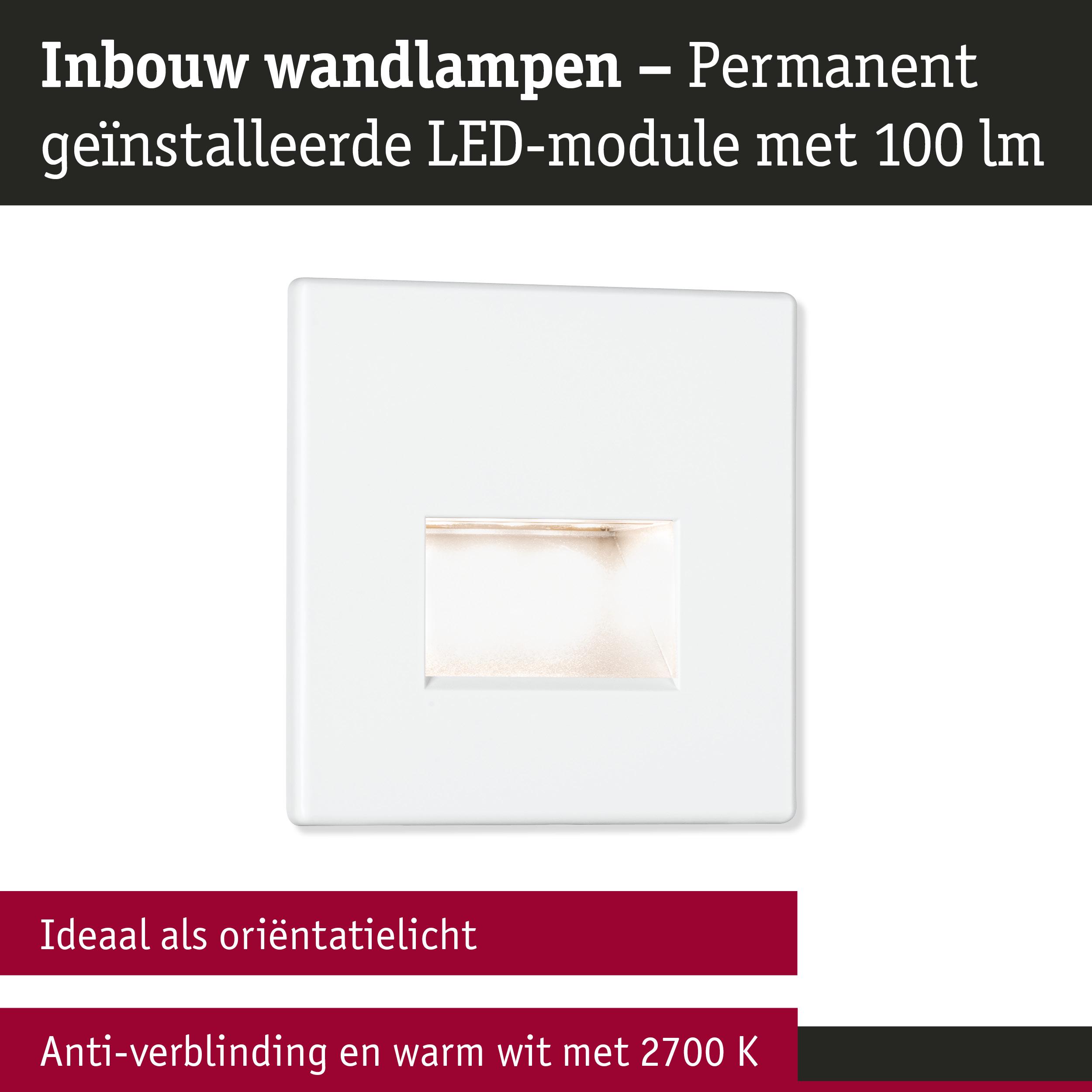 Set LED-wandinbouwlamp Edge Set van 3 hoekig 80x80mm 3x1,2W 3x50lm 230V 2700K Wit mat