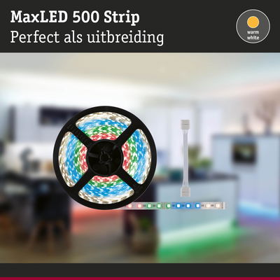 MaxLED-strips zijn zo sterk dat ze zonder problemen kunnen worden gebruikt voor ruimteverlichting. Dankzij de sfeervolle kleurveranderingsfunctie creëren ze een individuele sfeer in huis - van een constante eenkleurige verlichting tot meerkleurige lichteffecten is alles mogelijk. Een witte diode (W) zorgt voor extra gezellig warmwit licht en maakt het mengen van rood, groen en blauw licht (RGB) tot wit licht overbodig. Door de lengte van 10m is de strip optimaal geschikt voor het gebruik in objectinstallaties of bij grotere projecten. Met behulp van de drie meegeleverde adapterkabels kunnen meerdere strips met elkaar worden verbonden.