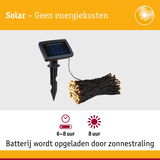 De lichtketting op zonne-energie Aurinka straalt in een warmwit licht door een kleurtemperatuur van 3000 Kelvin. Ze is perfect om de buitenruimte sfeer te geven en voor gezelligheid te zorgen. Dankzij de beschermingsklasse IP44 is de lichtketting spatwaterdicht en kan buiten worden gebruikt. Een ander voordeel is de geïntegreerde schemersensor die ervoor zorgt dat de lichtketting in het donker automatisch wordt ingeschakeld en bij daglicht weer wordt uitgeschakeld. De LED-lampjes zijn vast geïntegreerd en de lichtketting werkt op zonne-energie, wat niet alleen milieuvriendelijk is, maar ook een flexibele plaatsing mogelijk maakt. Met een lengte van 21,9 meter en 200 lampjes biedt de lichtketting op zonne-energie Aurinka een indrukwekkende verlichting en creëert een aangename sfeer in de buitenruimte.