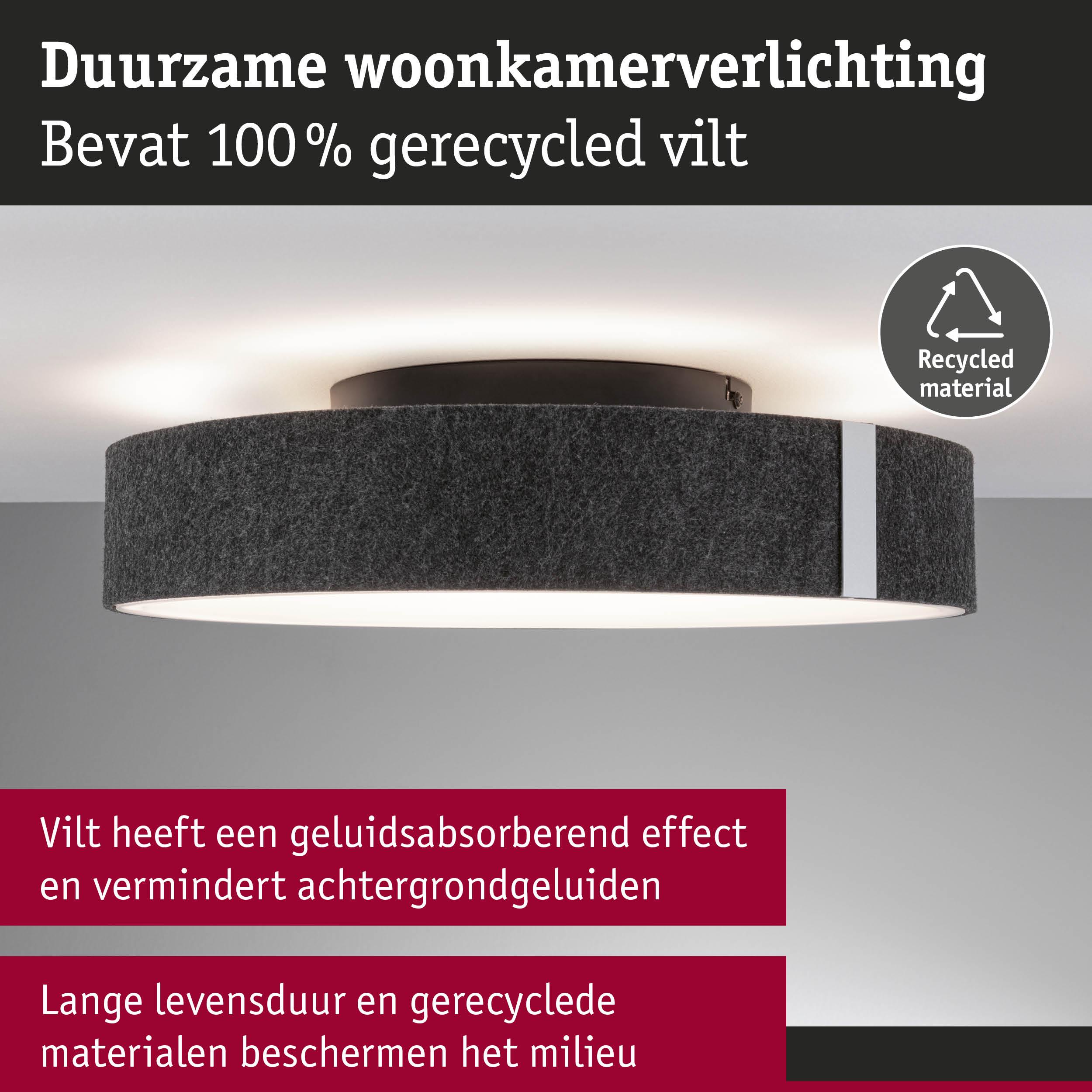 - Duurzaam gerecycled materiaal (ten minste 60% gerecycled gehalte in het vilt)