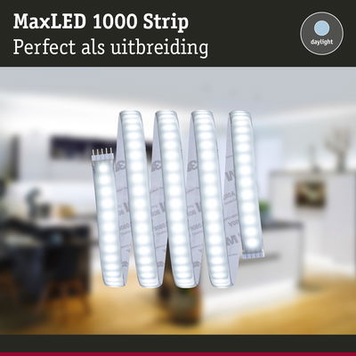 MaxLED-stripes zijn zo sterk dat ze zonder problemen kunnen worden gebruikt voor ruimteverlichting. Vooral in profielen zijn het echte blikvangers. Daglichtwitte stripes zorgen voor activerende en de concentratie bevorderende ruimte- en gebruiksverlichting. Met behulp van aparte stripes kunt u uw basisset naar wens uitbreiden. Let bij de planning vooral op de maximale lengte aangegeven op de basisset. Deze mag niet worden overschreden.