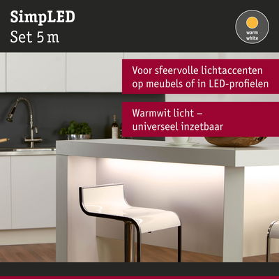 SimpLED LED Strip Warm wit Volledige set 5m gecoat 11W 300lm/m 60 LEDs/m 3000K 18VA