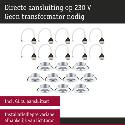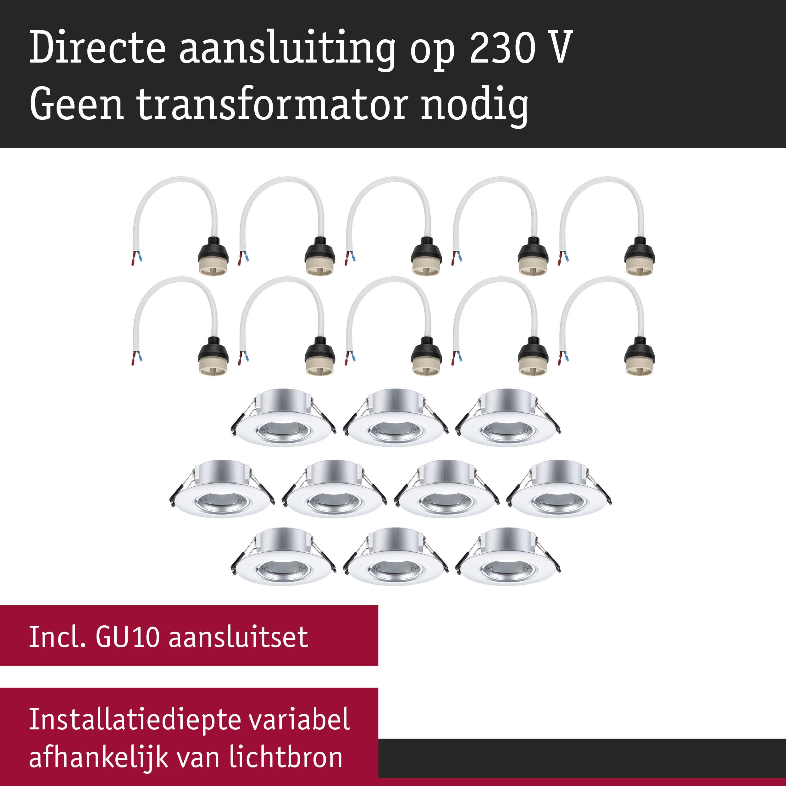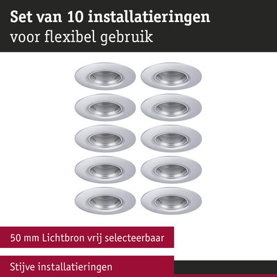 Inbouwlamp Set van 10 star rond 90mm GU10 max. 10x10W 230V dimbaar Chroom mat