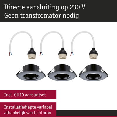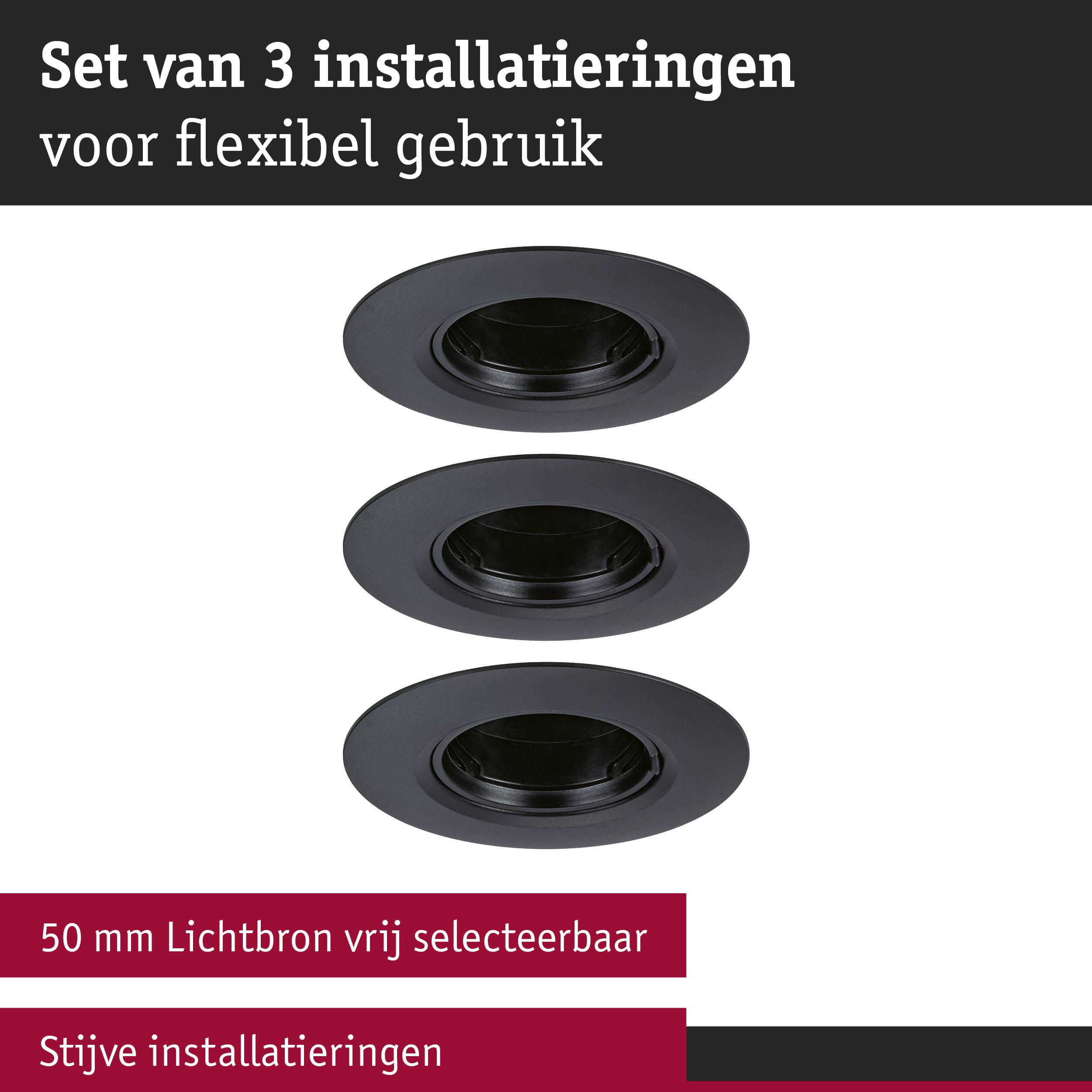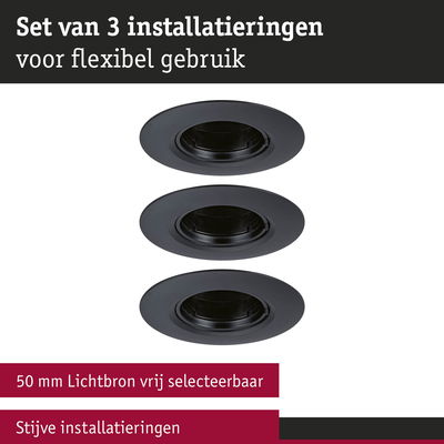 Inbouwlamp Set van 3 star rond 90mm GU10 max. 3x10W 230V dimbaar Zwart