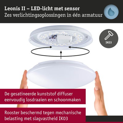 LED-plafondlamp Leonis II Schemergestuurde bewegingsmelder (HF) IP44 3000 - 5700K 1750lm 230V 16,5W dimbaar Wit