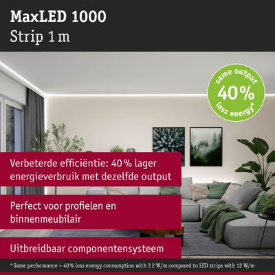 - LED strip met hoge efficiëntie, 40% minder energie bij dezelfde lichtoutput
