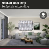 De warmwitte MaxLED 1000 LED strip is de ideale keuze voor een moderne en zeer energie-efficiënte verlichtingsoplossing. Vergeleken met conventionele lampen verbruikt de LED strip 40% minder energie bij dezelfde lichtoutput. De strip is uitstekend geschikt voor de toepassing in profielen en is met 18 W en 1100lm/m zo krachtig dat hij probleemloos kan worden gebruikt om de hele ruimte te verlichten. De kleurtemperatuur van 4000K zorgt voor een gezellig en niet-verblindend licht - ideaal voor de verlichting van woonkamers, keukens of slaapkamers. Om op elk gewenst moment de gewenste lichtsfeer te creëren, kan de helderheid flexibel worden gedimd. De strip kan heel eenvoudig worden ingekort met een schaar, waardoor hij heel gemakkelijk aan de ruimtelijke omstandigheden kan worden aangepast. De strip kan probleemloos op meubels, kasten of wanden worden aangebracht, wat veelzijdige ontwerpmogelijkheden biedt.