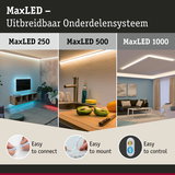 Eenvoudig schakelen en dimmen van de eenkleurige MaxLED-stripes door de MaxLED dimmen/schakelen controller en de bijgeleverde infrarood afstandsbediening. Hiervoor is zichtbaar contact tussen de afstandsbediening en de ontvanger nodig. De vier geheugenplaatsen maken het programmeren van de individueel gewenste instellingen mogelijk.