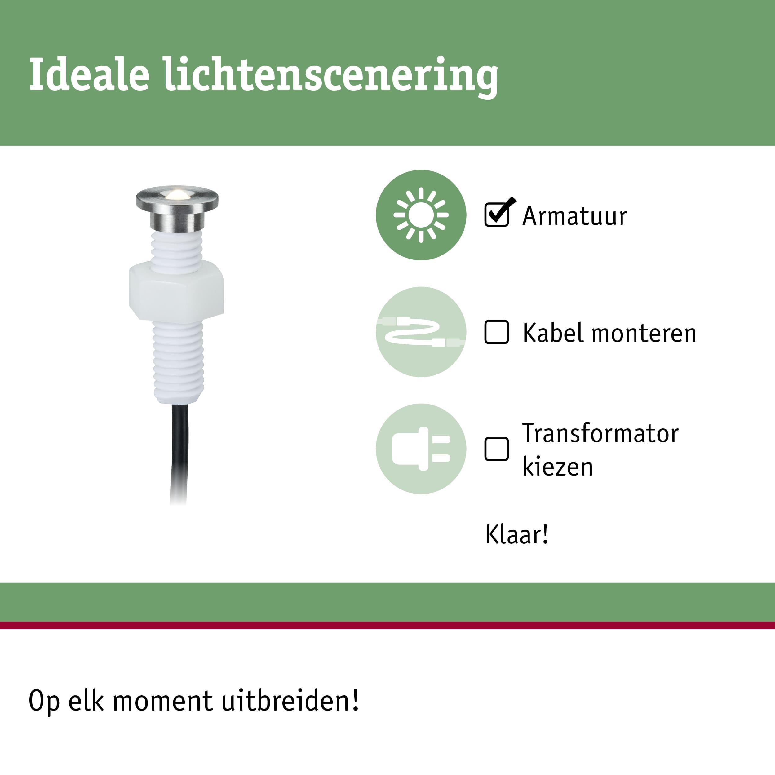 Plug & Shine LED-grondinbouwlamp MicroPen II Uitbreidingsset IP67 3000K 5x0,2W Zilver