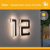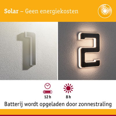 Het verlichte nummer 12 is de perfecte huisnummerverlichting, alleen of met verdere cijfers. Dankzij de werking op zonne-energie kan hij volledig onafhankelijk van het stopcontact aan de muur worden bevestigd. Overdag wordt het onzichtbare zonnepaneel opgeladen door zonlicht; 's nachts wordt het decoratieve cijfer indirect verlicht. In plaats van de twee afzonderlijke cijfers is het cijfer 12 verkrijgbaar als praktische waardeset tegen een gereduceerde prijs.