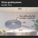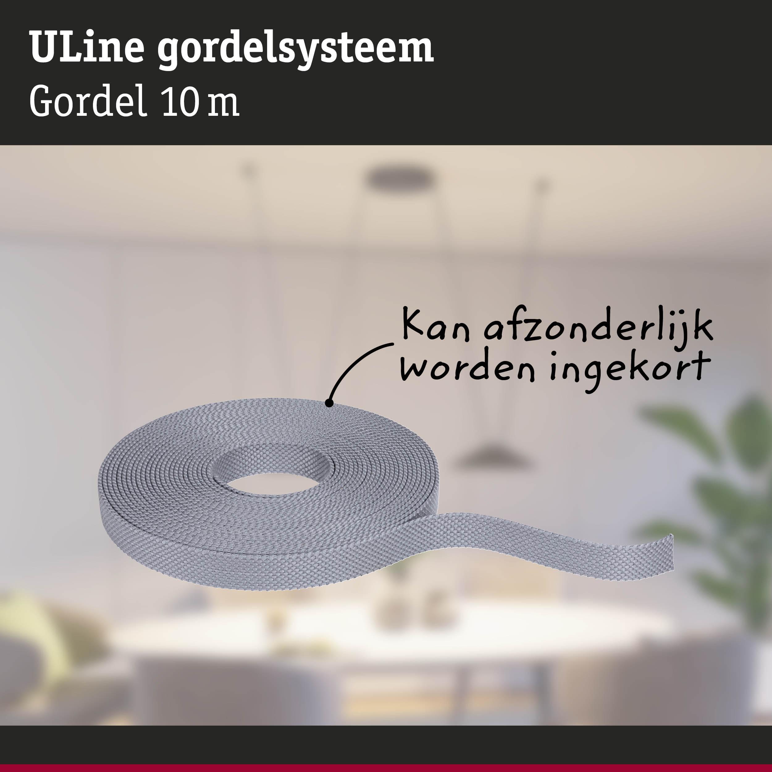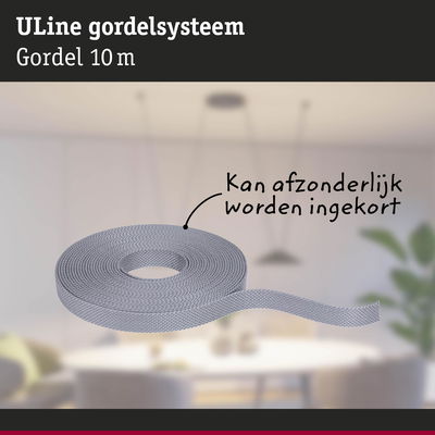 De ULine riem dient als basis voor het ULine riem-systeem. Hij is verkrijgbaar in twee lengtes (5 m en 10 m) en vijf kleuren - van klassiek zwart tot ongewoon oranje - en kan overal in de kamer worden geplaatst en indien nodig met een schaar worden ingekort. Bijpassende armaturen kunnen naar wens op de riem worden geplaatst. De 2,1 cm brede riem wordt met behulp van geschikte beugels aan de wand, het plafond of de vloer bevestigd. Zo kan in slechts een paar stappen een persoonlijk verlichtingsconcept worden geïmplementeerd. Het scheurbestendige en duurzame Textiel/Koper van de riem zorgt voor een lange levensduur en een hoge belastbaarheid. De banden zijn gecoat en gemakkelijk schoon te maken. Een speciaal hoogtepunt is de interne, onzichtbare kabelgeleiding, die zorgt voor een strakke look zonder zichtbare draden. Alles uit de riemen wordt geleverd met twee eindkappen van silicon voor een esthetische afwerking. Het ULine riem-systeem is een innovatieve oplossing voor unieke verlichtingservaringen in alle ruimtedimensies en maakt gerichte lichteffecten op wanden, plafonds en vloeren mogelijk.