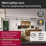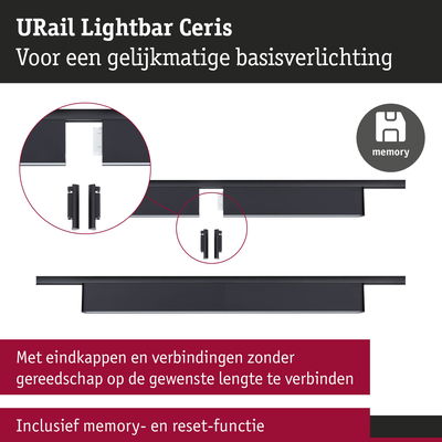 De URail Lightbar Ceris in Zwart mat met een kleurtemperatuur van 3000K creëert een aangename warmwitte lichtsfeer in woonruimtes, werkkamers, gangen of andere ruimtes. De breedstralende diffusor zorgt daarbij voor een niet-verblindende en gelijkmatige lichtverdeling. Door het hoogwaardige aluminium en subtiele design past hij naadloos in individuele woonconcepten. De lengte van 32,2 cm is niet ideaal? Geen probleem - Er kunnen zoveel Lightbars als nodig met elkaar worden verbonden, om voor verschillende ruimtes de perfecte lengte te krijgen. Hiervoor kunnen de eindkappen heel eenvoudig worden afgenomen en met de meegeleverde verbindingen tot de gewenste lengte worden uitgebreid. Verbinden met de Lightbar Zelos is ook probleemloos mogelijk. Een ander voordeel is de 3-stepdimfunctie waarmee de helderheid in drie standen kan worden ingesteld met een gewone lichtschakelaar. De geïntegreerde geheugenfunctie slaat de laatst gebruikte instelling op tot het volgende inschakelen, voor maximaal comfort.