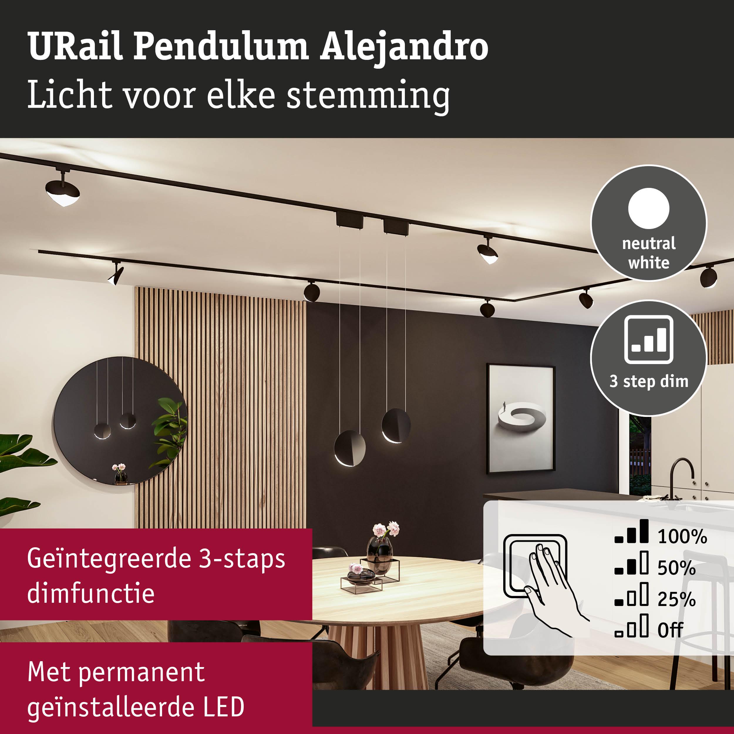 URail Pendels 3-Step-Dim Alejandro 800lm 10W 4000K dimbaar 230V Zwart mat