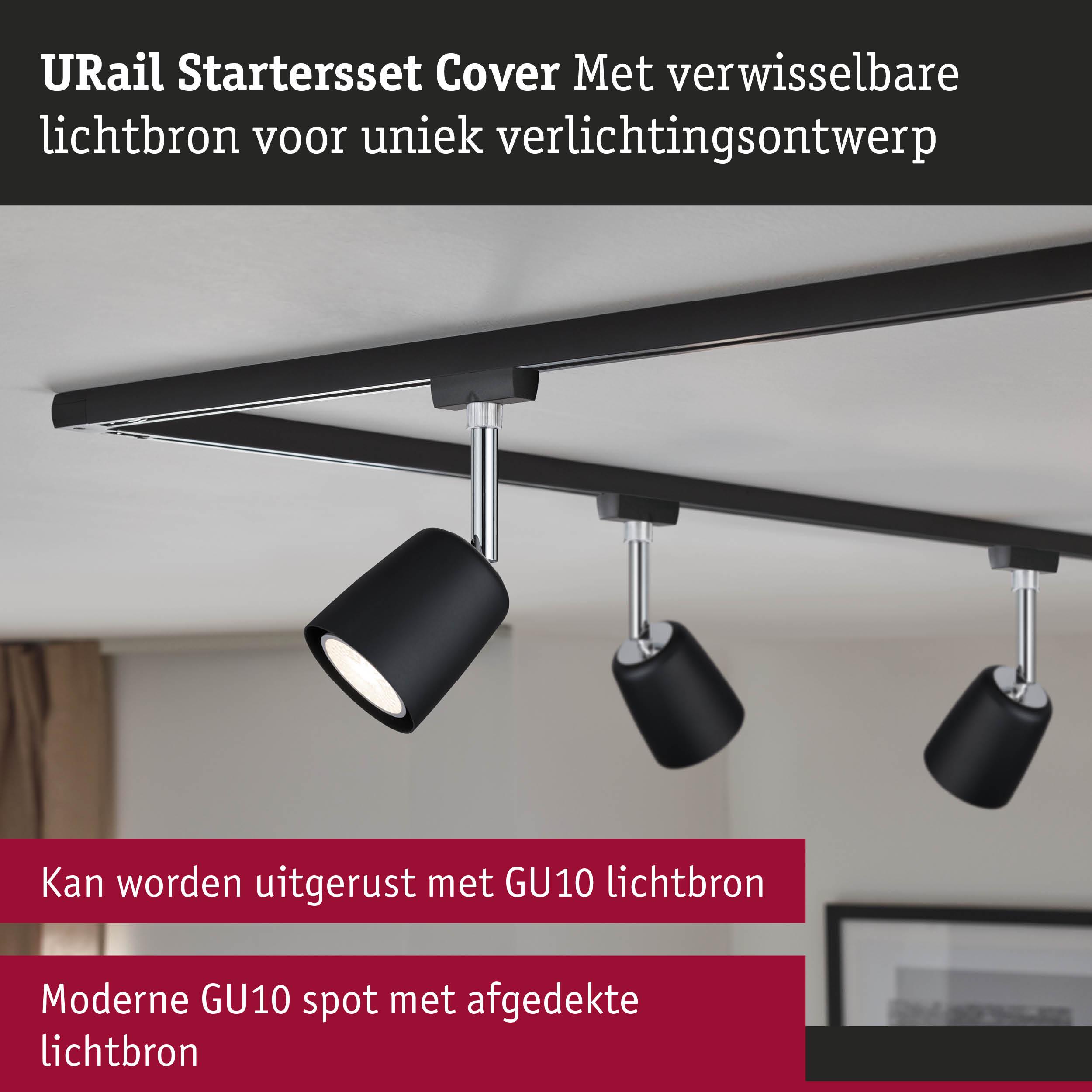 URail Railspot Cover Startersset GU10 max. 10W dimbaar 230V Zwart mat/Chroom