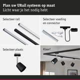 Met de praktische URail startersets staat niets de perfecte verlichtingsinstallatie meer in de weg. Deze bundel is niet alleen verkrijgbaar tegen een gereduceerde prijs, maar bevat ook alles aan belangrijke componenten die nodig zijn voor de installatie van een nieuw URail System. Een bijzonder hoogtepunt van de bundel zijn de drie zwart matte URail Spot Cover, die volledige flexibiliteit bieden bij het selecteren van de gloeilamp. Elke reflectorlamp met een gu10 voet en een vermogen van max. 10W kan worden geselecteerd - wit of gekleurd licht, sterke of minder sterke lichtbundeling. Het discrete ontwerp van de led-spots past bij elke interieurstijl en opent een breed scala aan mogelijke toepassingen. De meegeleverde URail centrale toevoer in zwart mat past perfect in elke verlichtingsinstallatie dankzij zijn railvorm. Een ander belangrijk onderdeel van de URail startersets is de interne lijnverbinding, die na maandag onzichtbaar in de rails verdwijnt. Samen met de 1m URail rail in bijpassend zwart mat is de aantrekkelijke bundel compleet.